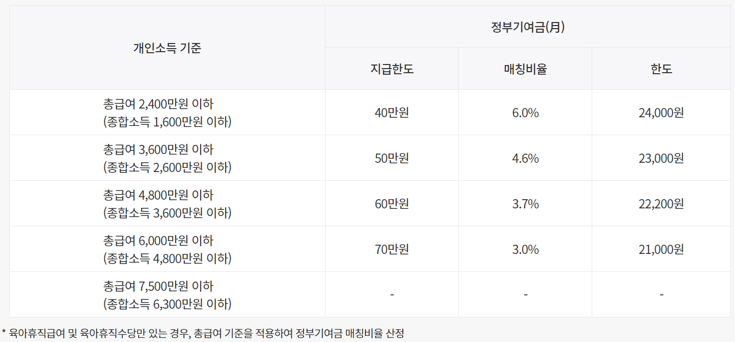 저축액에 매칭하여 지원되는 금액으로, 소득이 낮을수록 더 높은 비율이 적용되며 월 최대 2만 4천원까지 받을 수 있습니다.