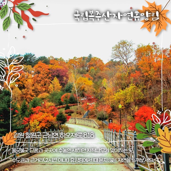도시의 소음에서 벗어나 자연 속에서 가족과 함께 단풍을 감상하며 가을의 풍요로움을 느낄 수 있는 이곳은, 일상에 지친 몸과 마음을 치유할 수 있는 완벽한 여행지가 될 것입니다.