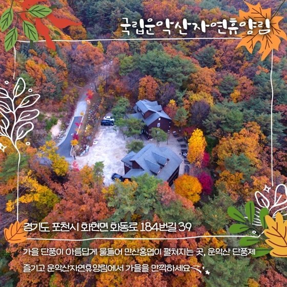 가벼운 산행과 함께 가을 정취를 마음껏 만끽할 수 있는 운악산자연휴양림에서의 하루는 그야말로 완벽한 가을 여행이 될 것입니다.