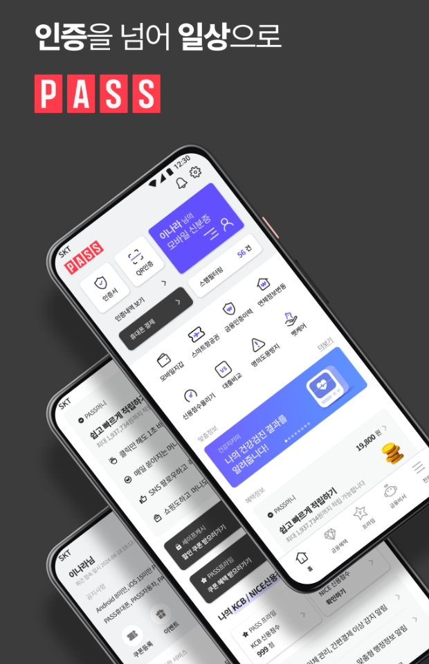 앱스토어나 구글플레이에서 ‘PASS’ 앱을 검색하여 설치합니다. - 서비스 메뉴 접속